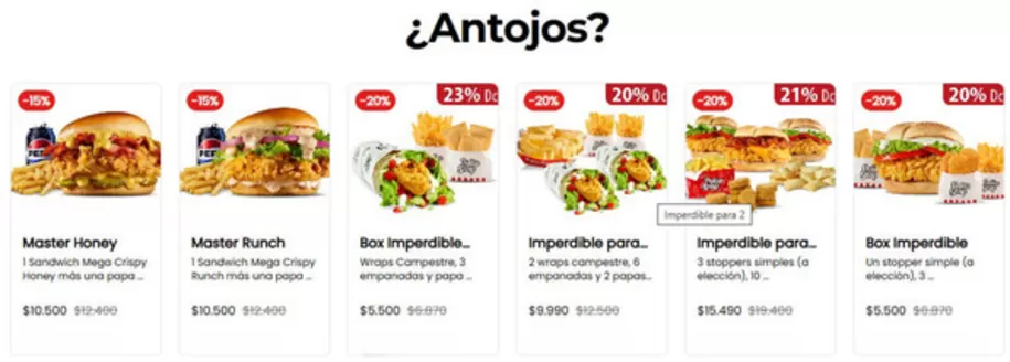 Las empresas de comida al paso brindan opciones para satisfacer las necesidades rápidamente y de una manera muy cómoda. Prueba los menús de Subway, McDonalds, Burger King, KFC, Starbucks, Telepizza, Pollo Stop y muchos otros. Los platos de las grandes cadenas están probados por su aceptación en todo el mundo: sabes lo que puedes esperar y brindan satisfacción instantánea.